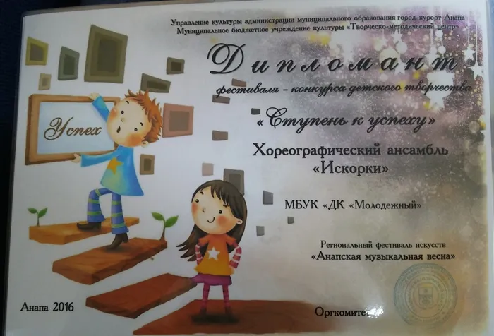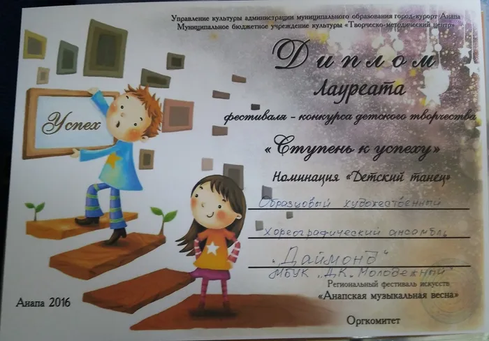 А образцовый художественный хореографический ансамбль "Даймонд" (руководитель Удачина Татьяна), ДК "Молодежный" из рук компетентного жюри получили диплом лауреата, а хореографический ансамбль "Искорки" - грамоту дипломанта.