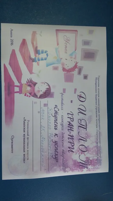 Участниками конкурса стали детские творческие коллективы и солисты в возрасте от 5 до 8 лет. За несколько часов конкурсной программы на суд компетентного жюри и многочисленных зрителей было представлено более 100 вокальных и хореографических номеров. Среди них был и образцовый художественный ансамбль «Акварель», ДК «Молодежный» (руководитель Елена Остапенко) с коллективом и солистами Любой Лейтан и Низамовой Камиллой. «Акварель» взял Диплом лауреата за песни «Разноцветная игра» и «Бегемотик». А маленькая артистичная Камилла получила Гран-при за «Шапокляк».